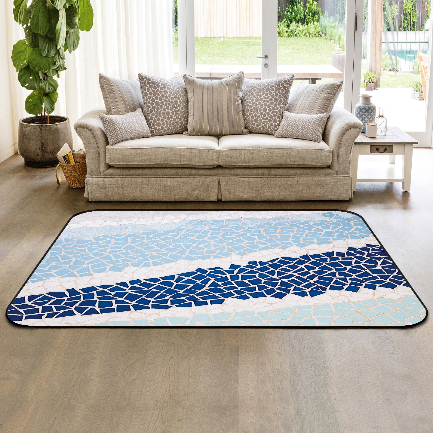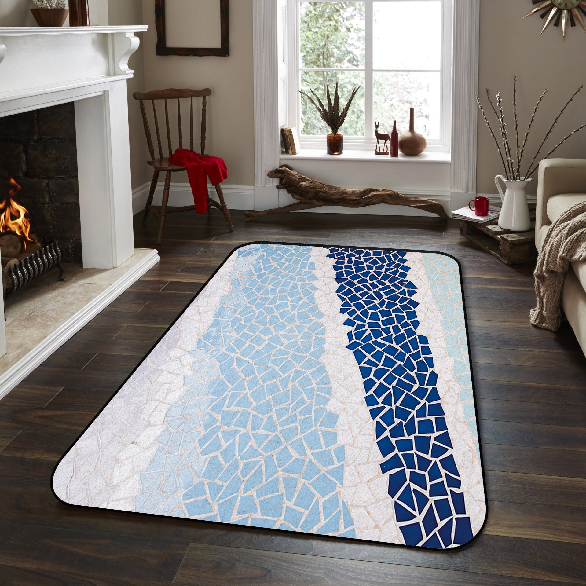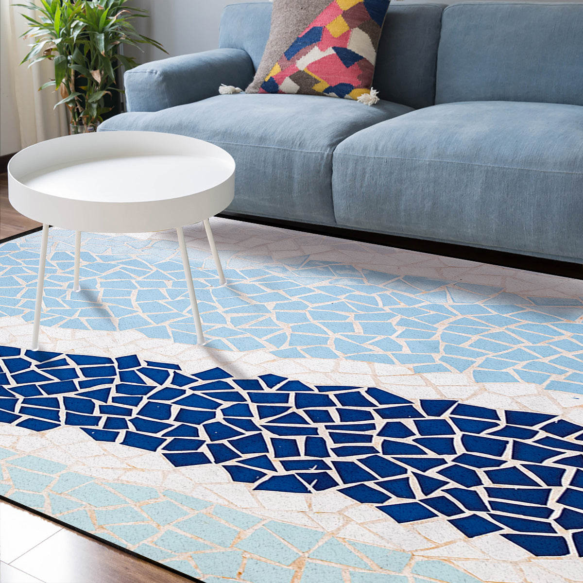 Indigo Blue Triangle mosaic marble Sponge Rillet Rubber Rugs