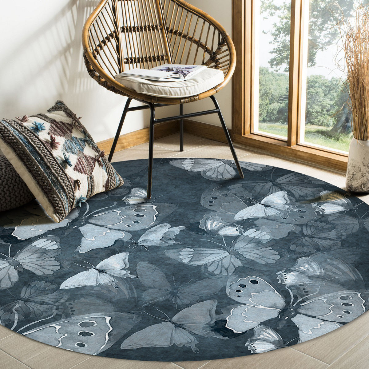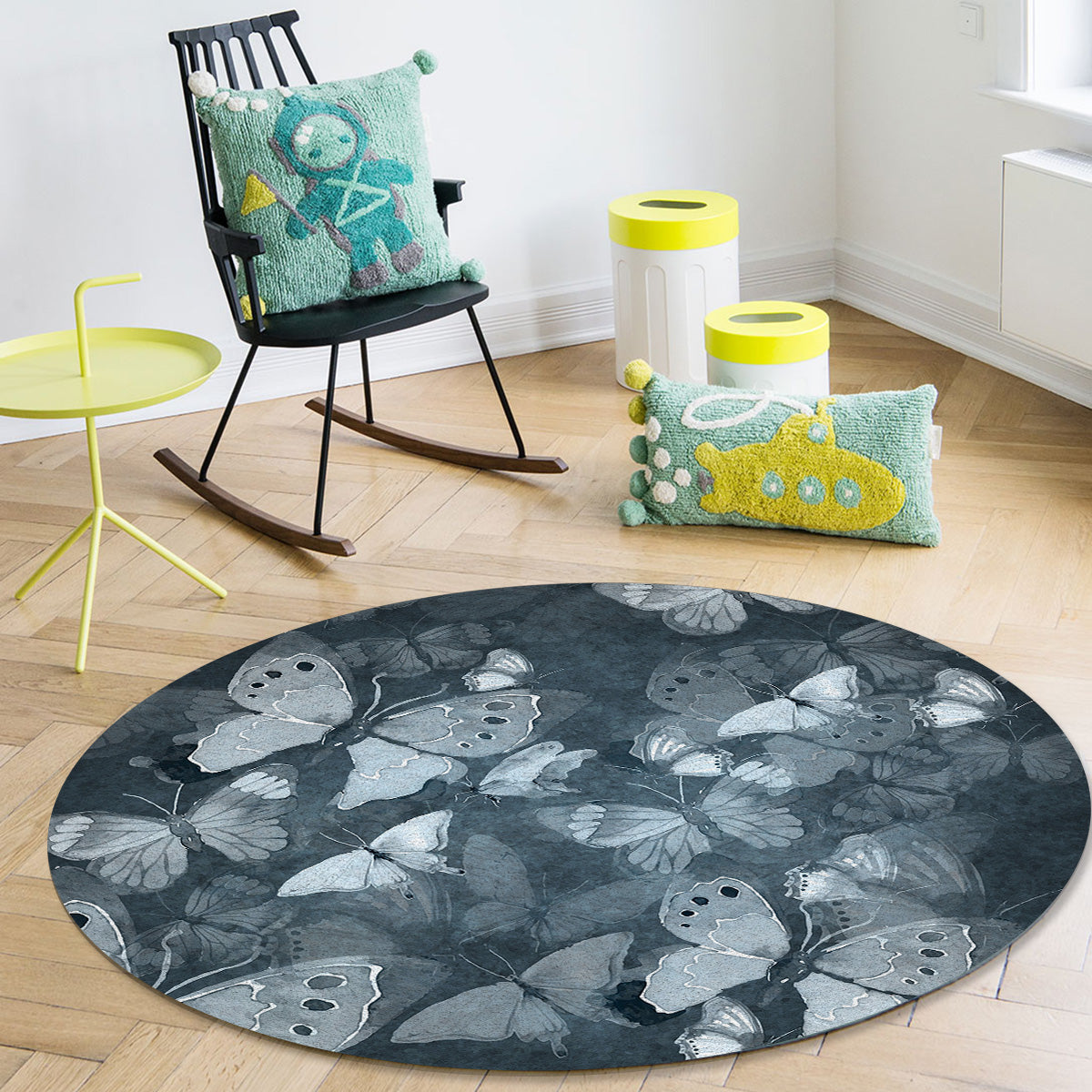Hand painted Butterfly Circular Felt Rugs