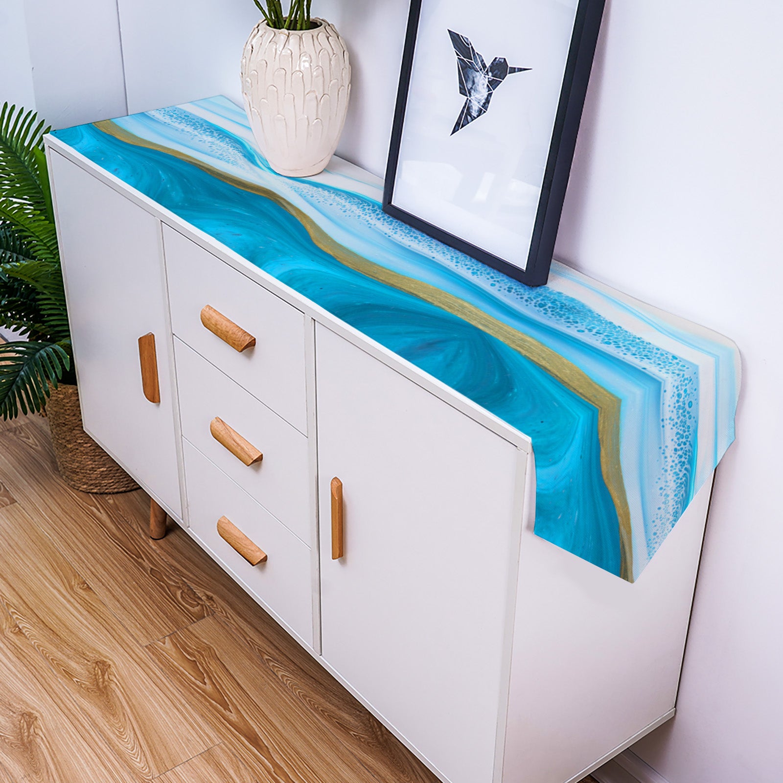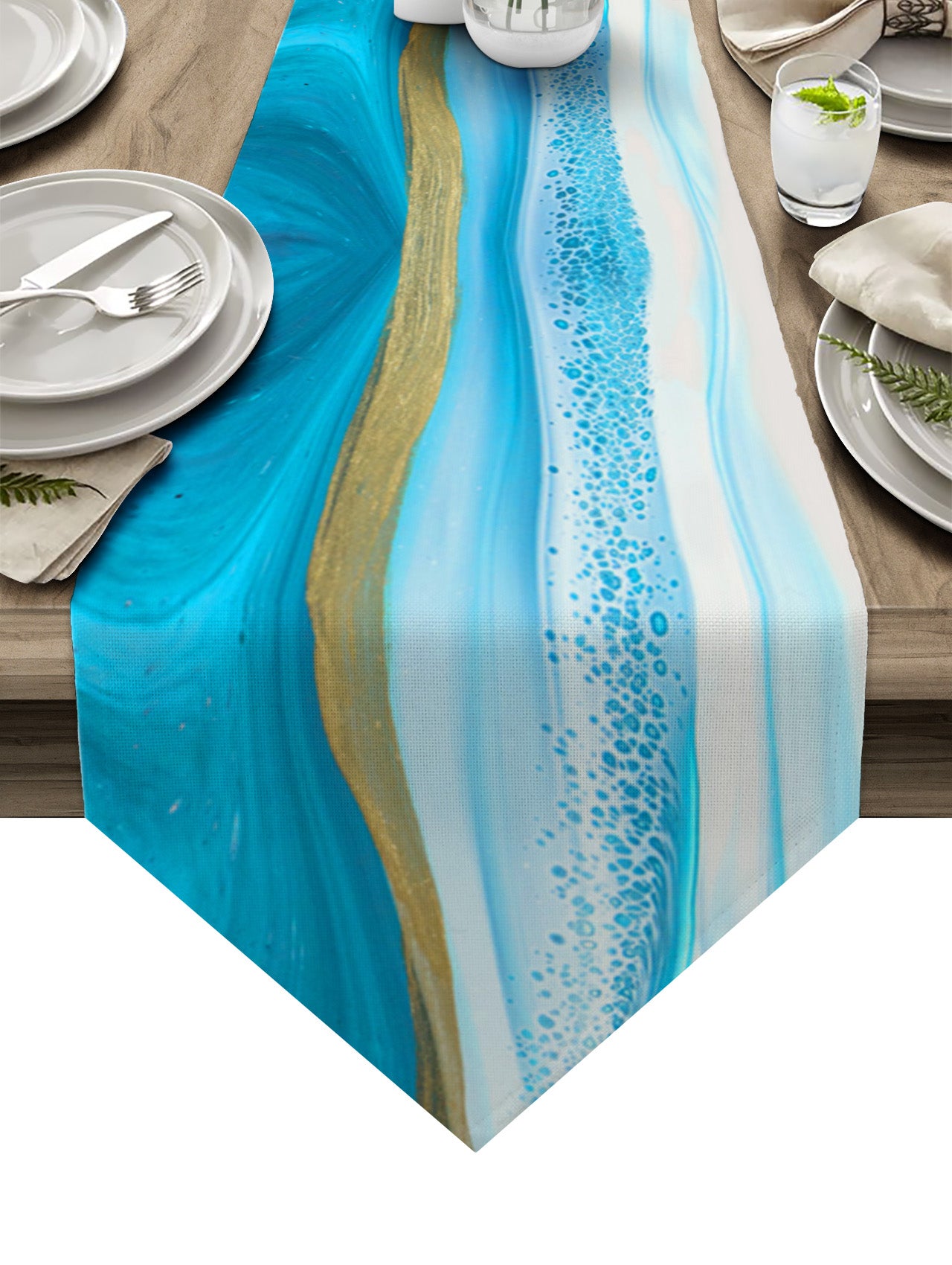 Blue Watercolor Gradient Marble Texture Table Runner Place Mats Sharp Angle