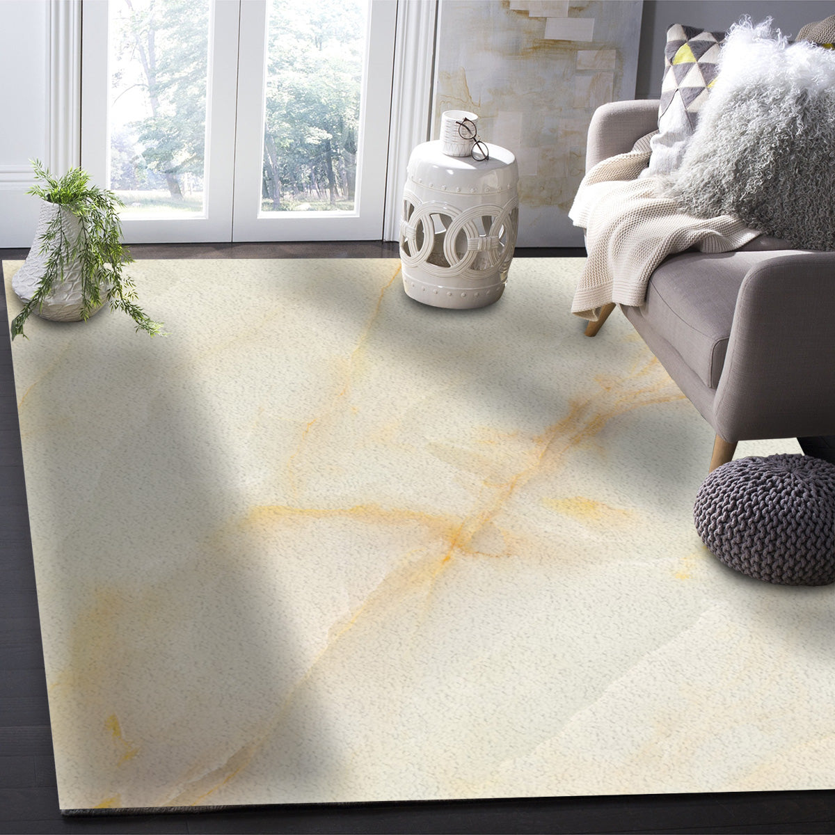 Beige Marble Texture Right Angle Felt Rugs