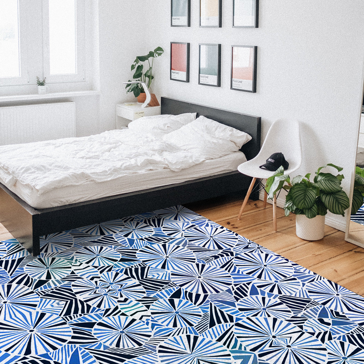 Blue Geometric Umbrella Right Angle Felt Rugs