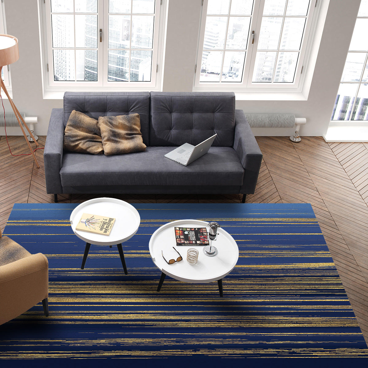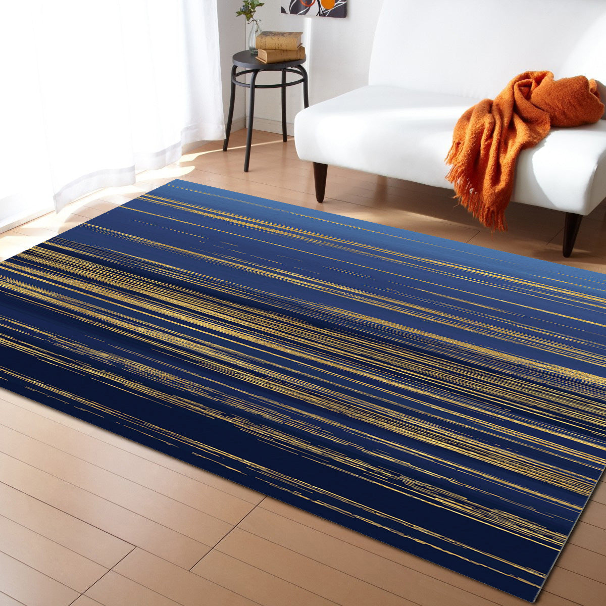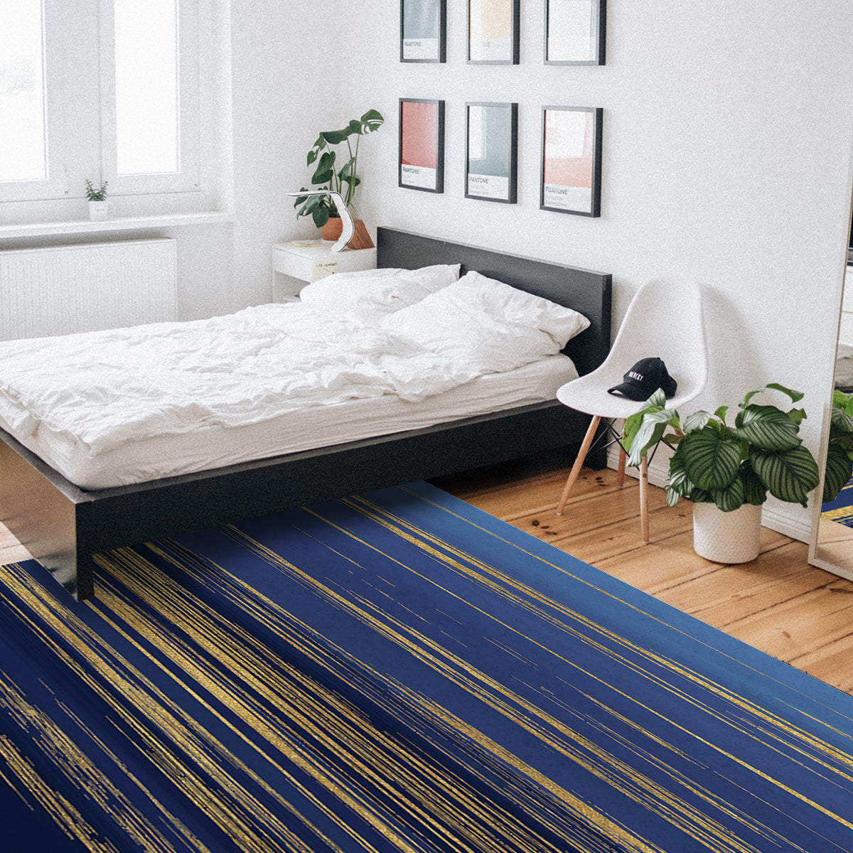 Blue Marbling yellow lines Right Angle Felt Rugs