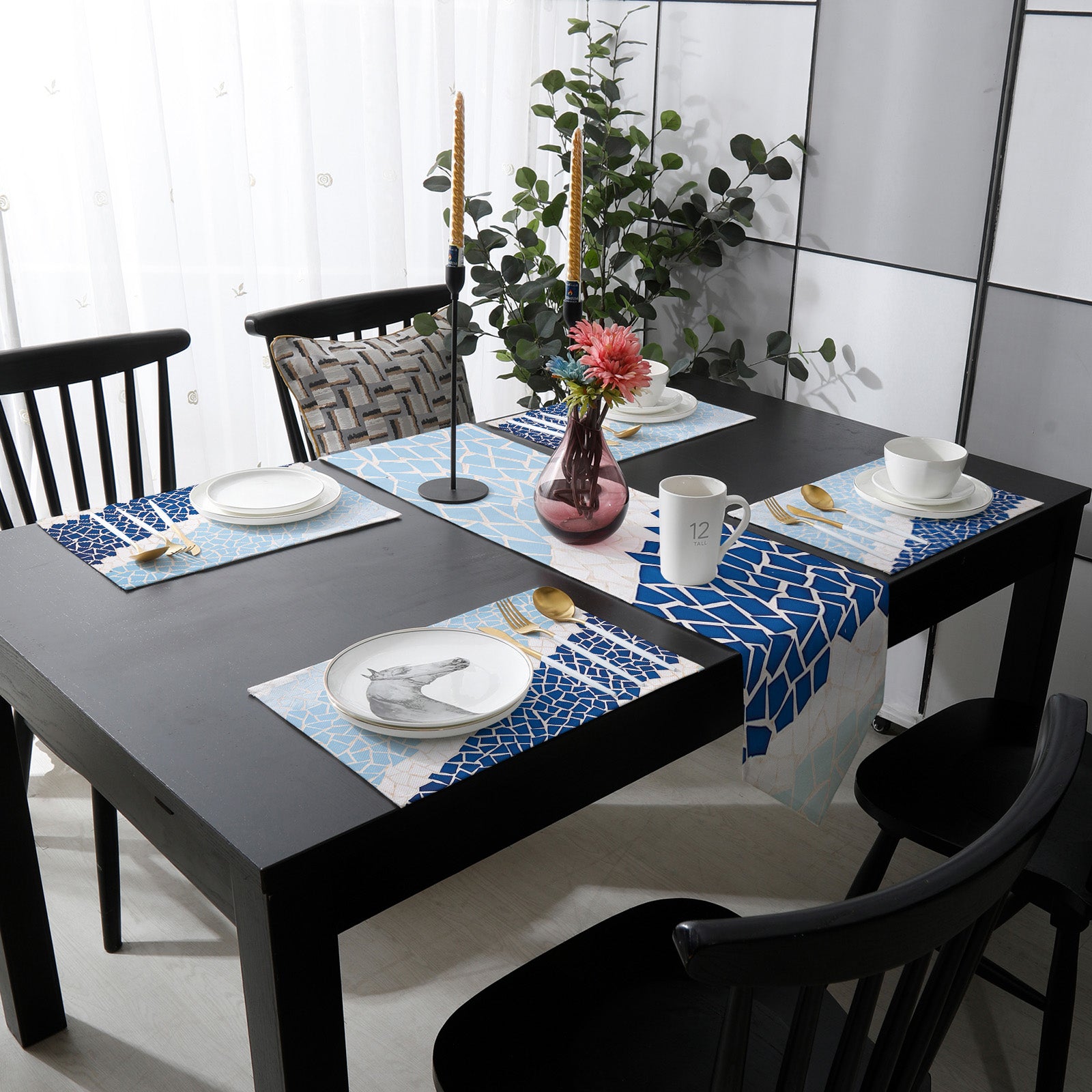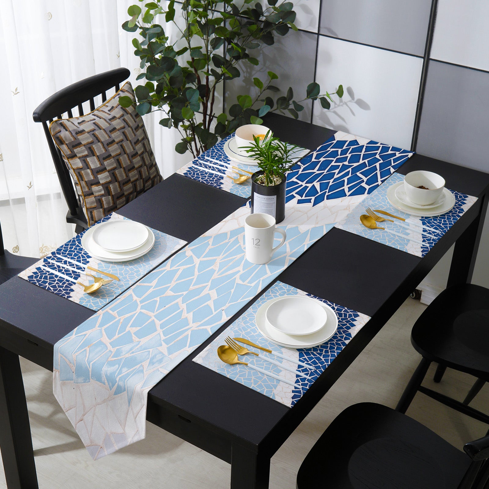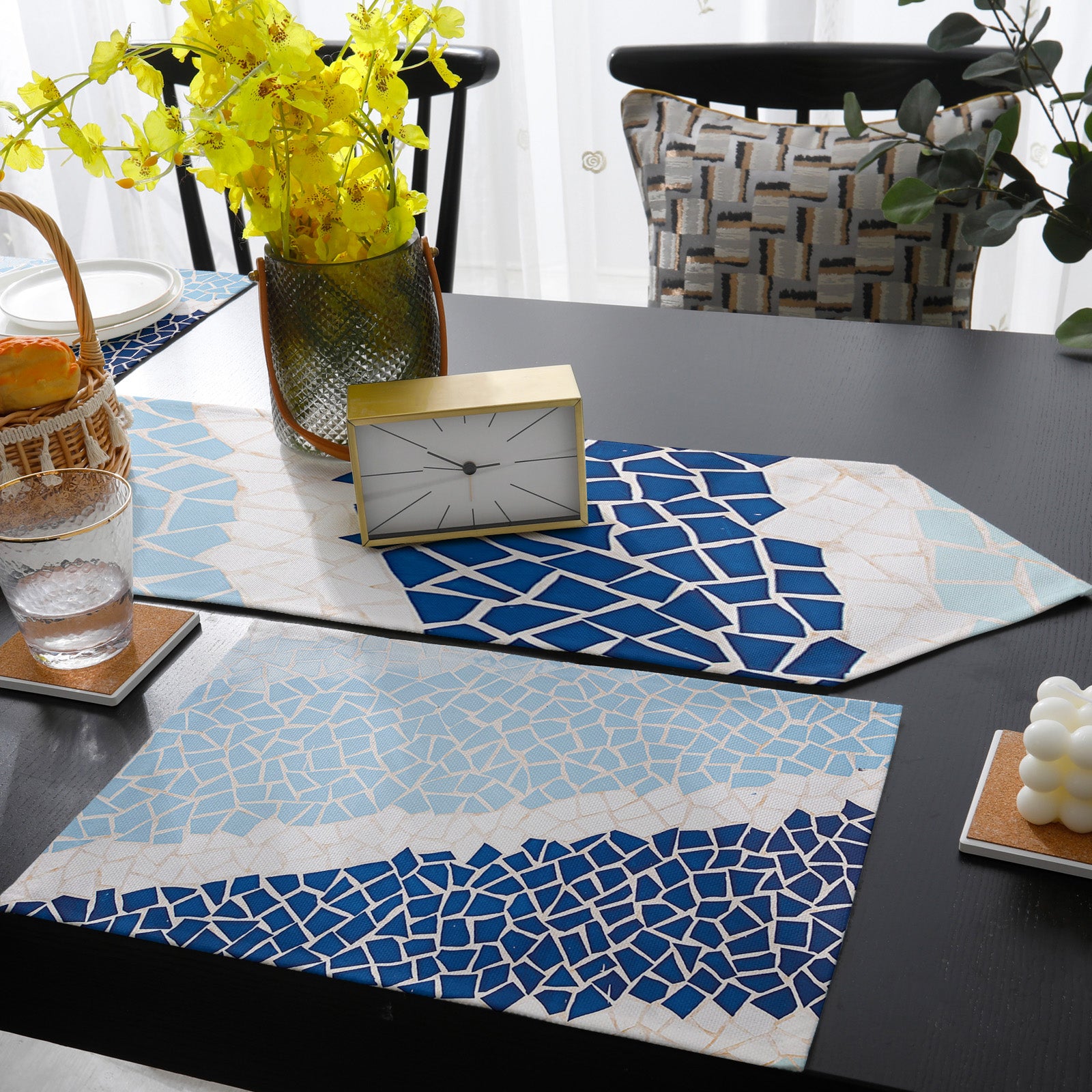 Indigo Blue Triangle mosaic marble Table Flag And Table Mat Suit Sharp angle