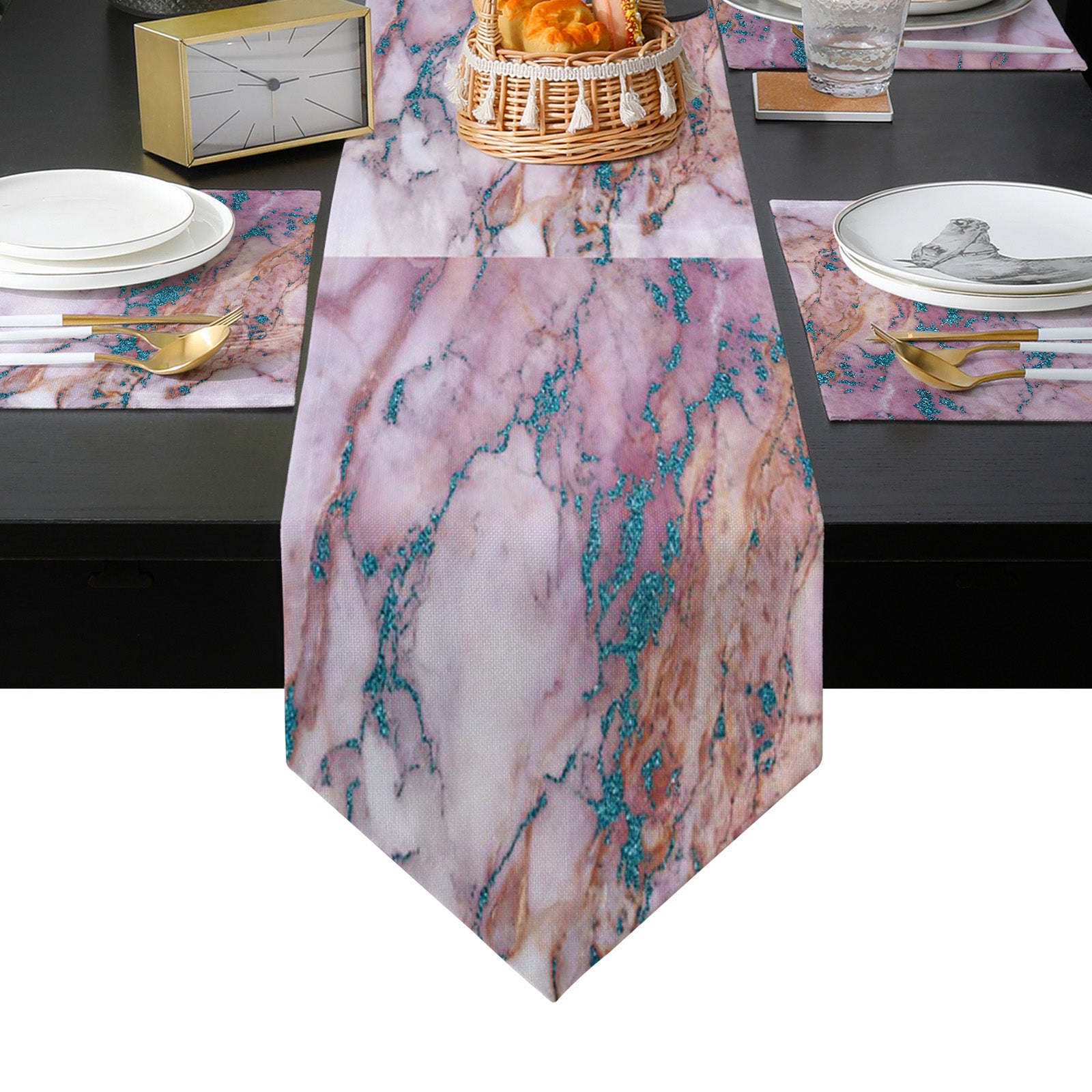 Pink Marble light color pattern stone Table Flag And Table Mat Suit Sharp angle