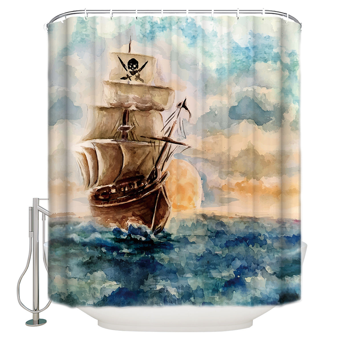 Oil Painting Pirate Ship Waterproof Durable Shower Curtain
