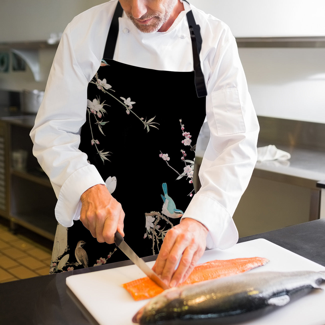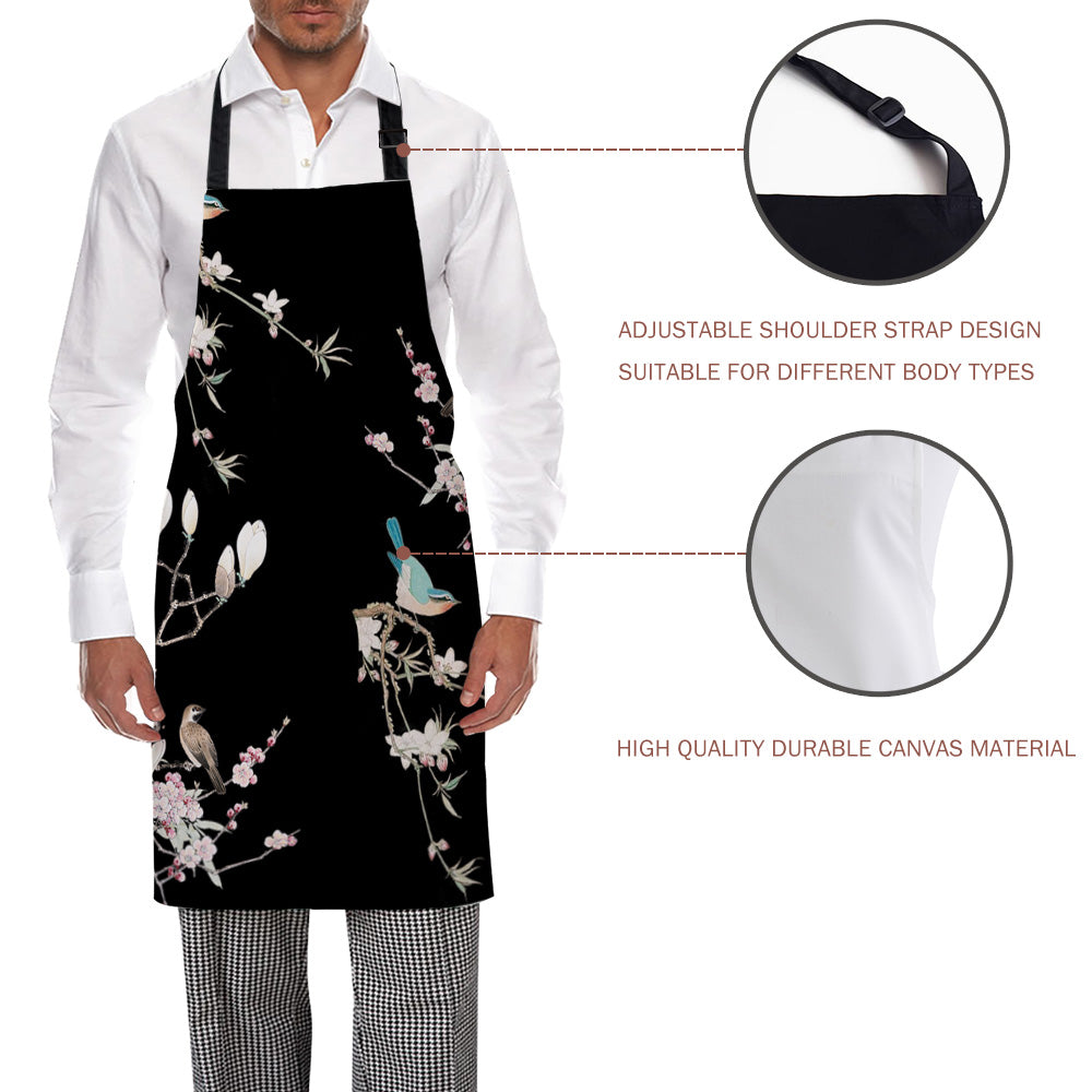 Bird painting in Chinese style Black Personalized Canvas Apron