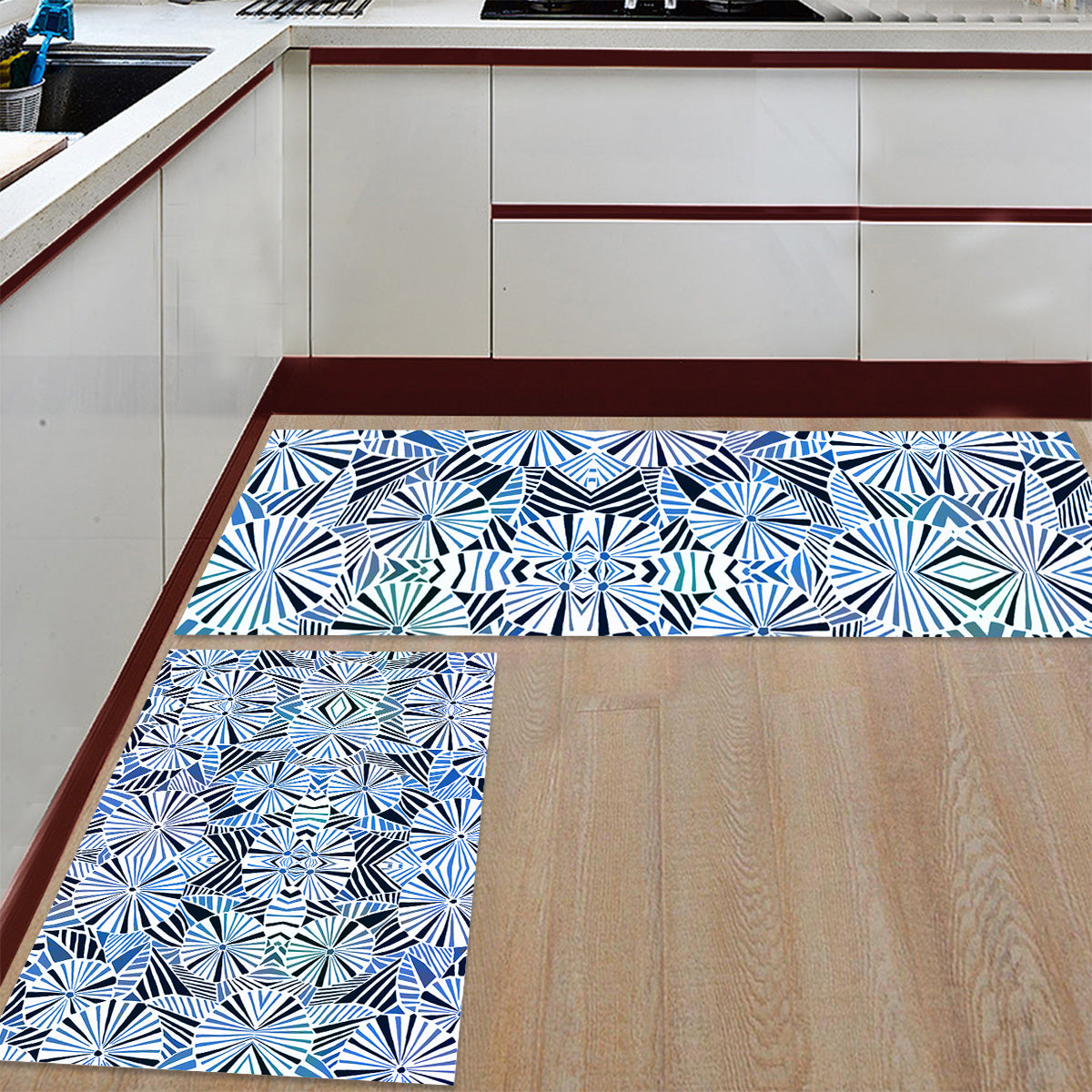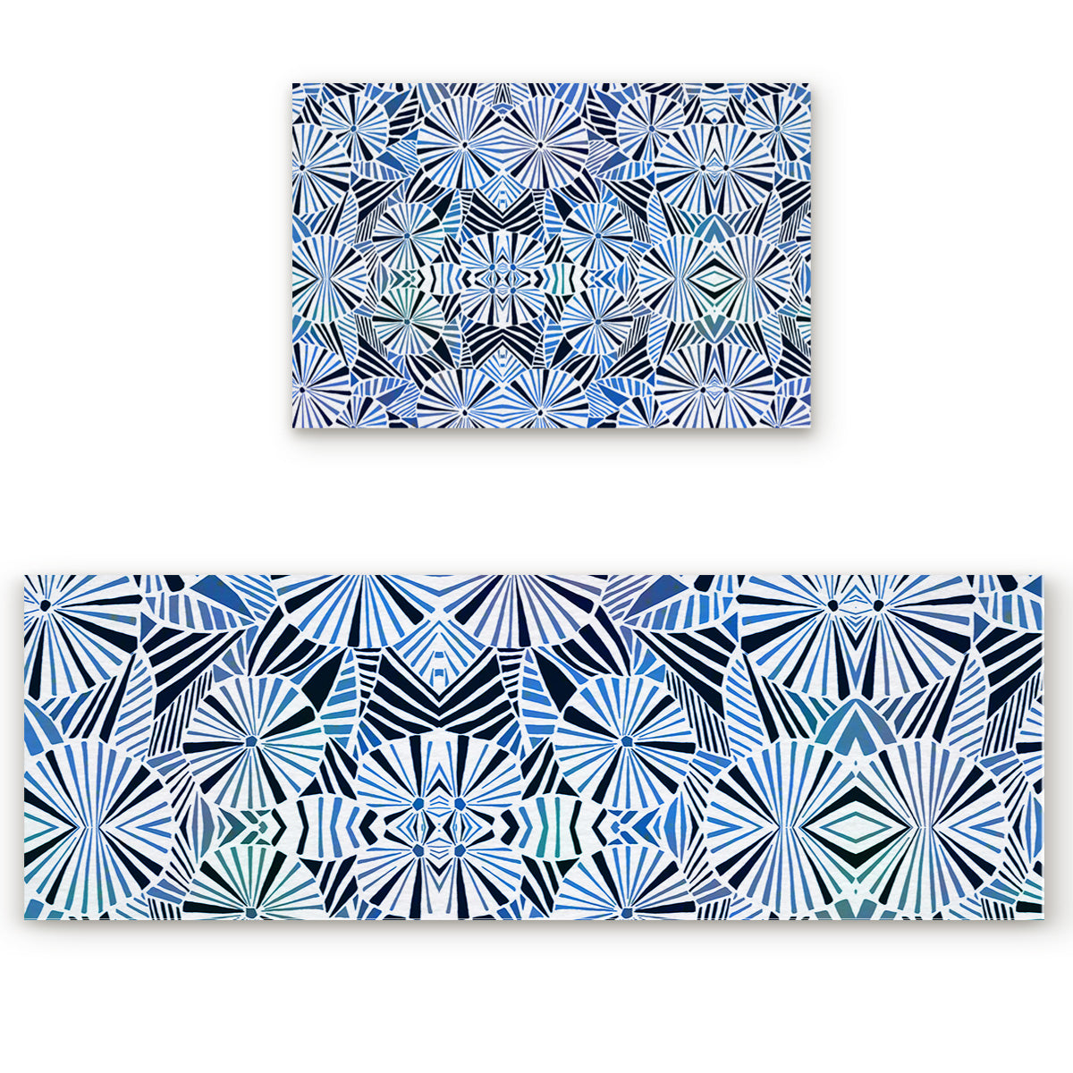 Blue Geometric Umbrella Right Angle Felt Doormat Two piece set
