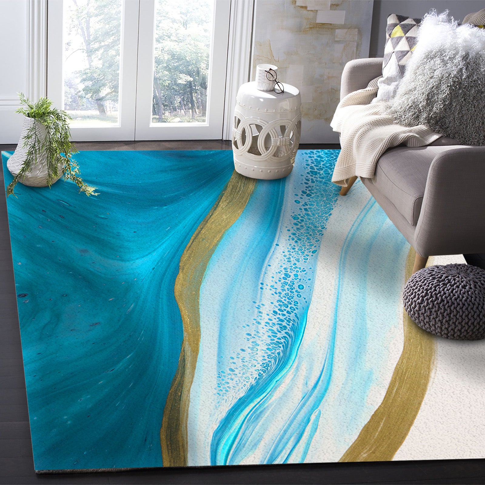 Blue Watercolor Gradient Marble Texture Right Angle Felt Rugs