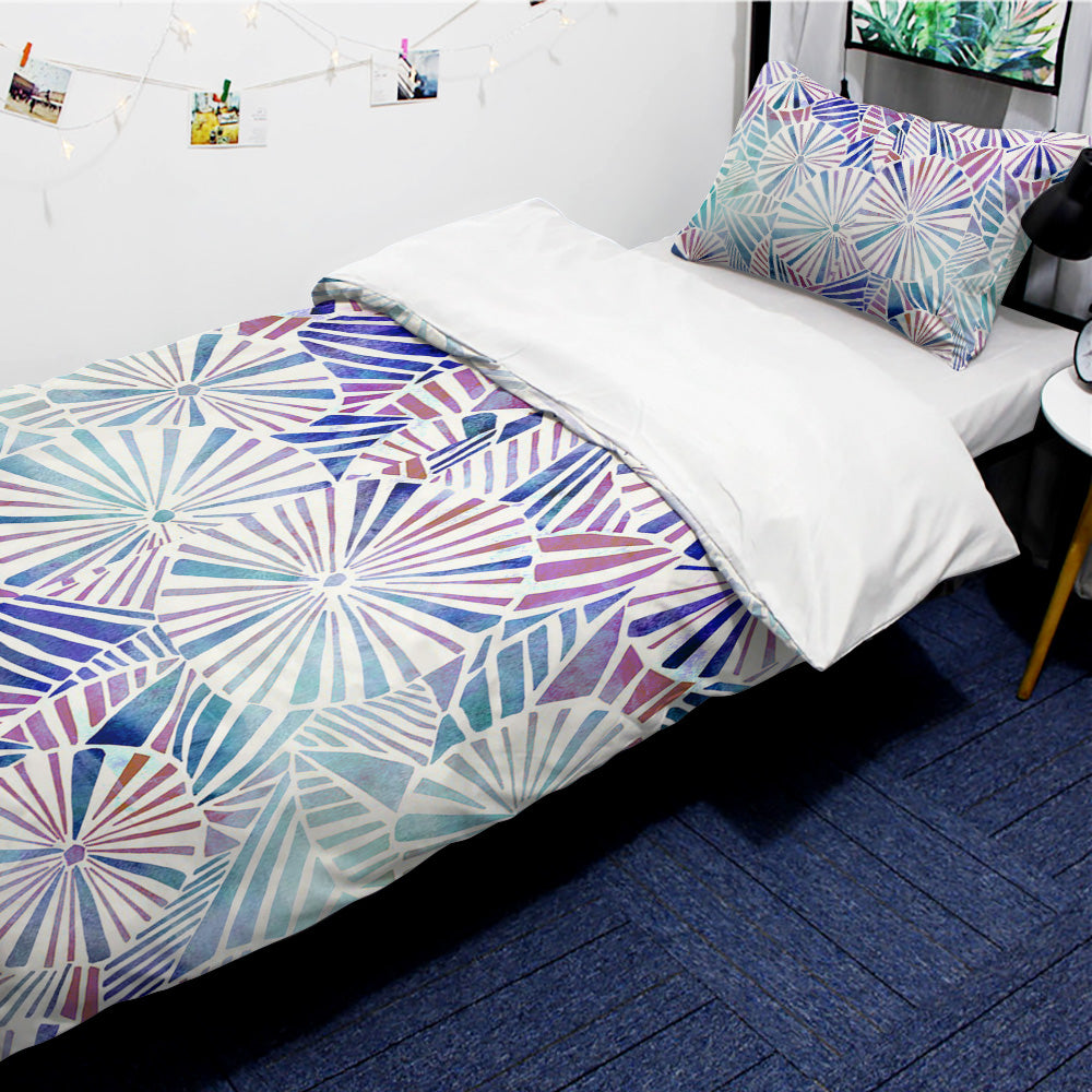 The pillowcase comes in contrast to the comforter¡¯s printed pattern and the flat sheet compliments the comforter.?