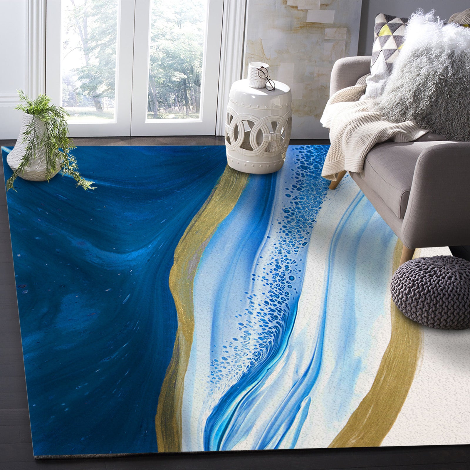 Deep Blue Watercolor Gradient Marble Texture Right Angle Felt Rugs