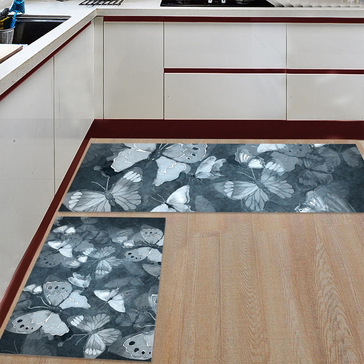 Hand painted Butterfly Right Angle Felt Doormat Two piece set