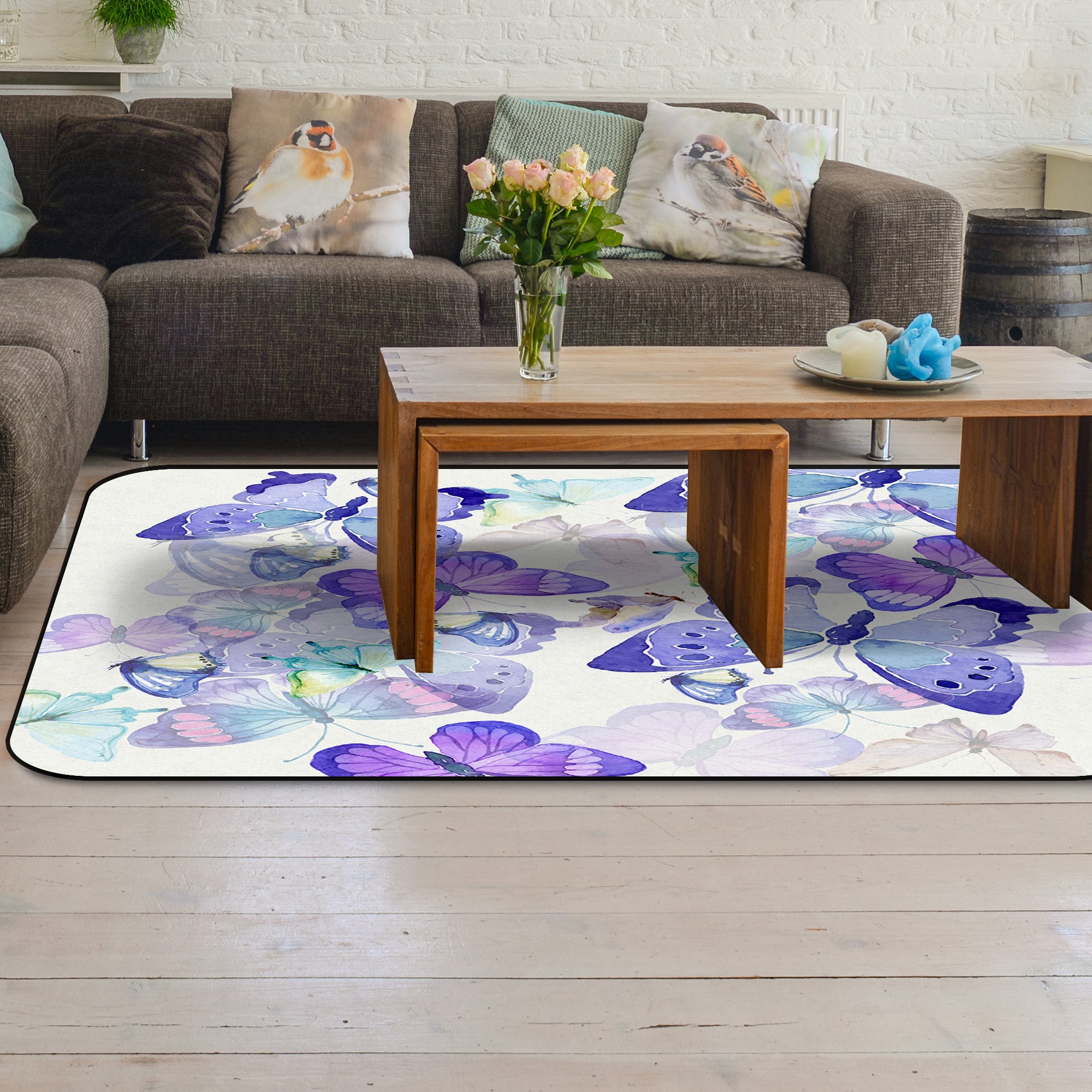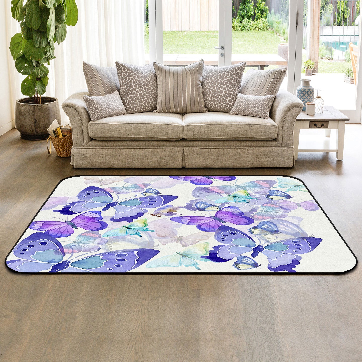 Hand painted Butterfly Sponge Rillet Rubber Rugs